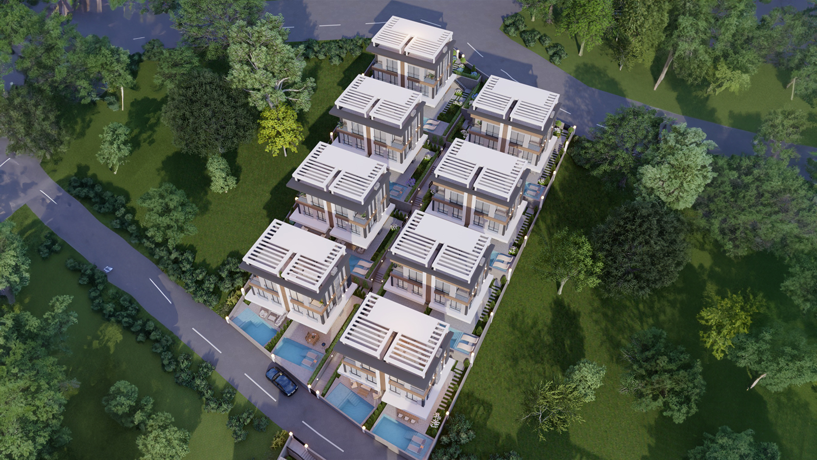 Her villaya özel farklı bahçe konseptleri dikkat çekmektedir.